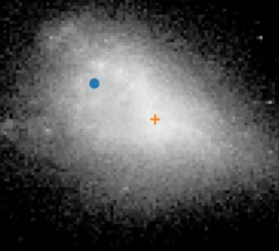 Этот «удар» полностью разрушил какое-либо упорядоченное вращение в газе, превратив его движение в радиальное расширение. Именно эти радиальные потоки, а не вращение диска, создают наблюдаемый градиент лучевых скоростей HI. Кроме того, различная реакция звезд и газа на столкновение объясняет и наблюдаемое смещение их центров: фотометрический центр старых звезд не совпадает с кинематическим центром нейтрального водорода примерно на 1–2 кпк.