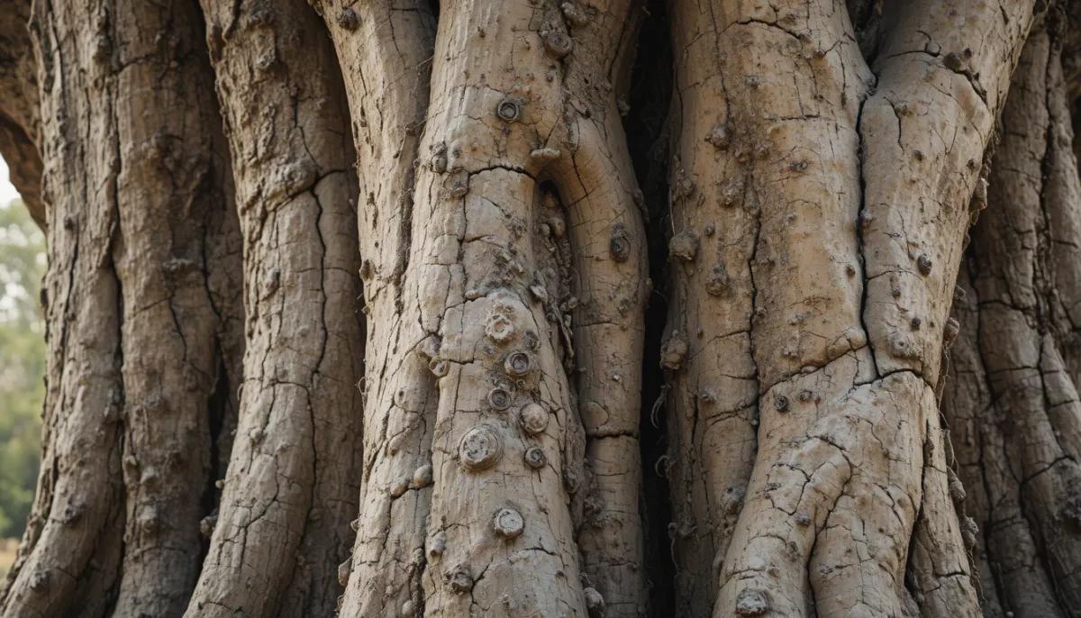 - Необычная форма ствола, будто дерево было скрученным или “срослось” с другим организмом.
