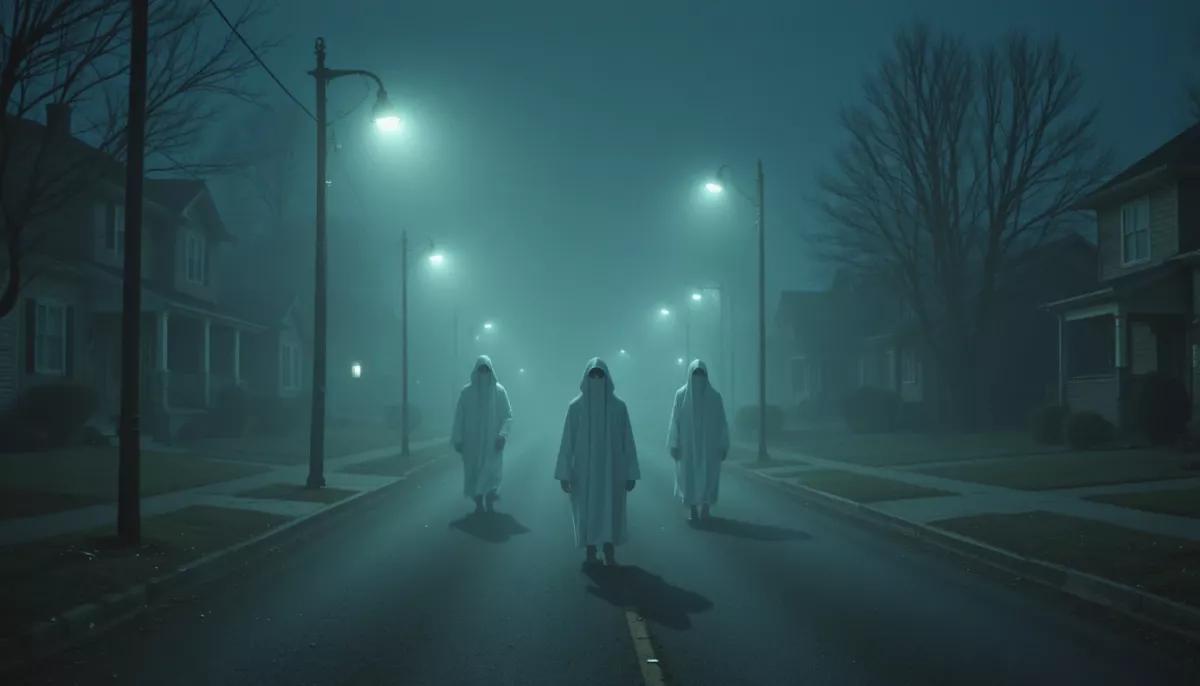 Однако на обратном пути, проходя мимо того же окна, она все же решила бросить более внимательный взгляд на улицу. То, что она увидела, мгновенно отогнало остатки сна. В считанных метрах от ее дома, в слабом свете уличных фонарей, стояли три фигуры.