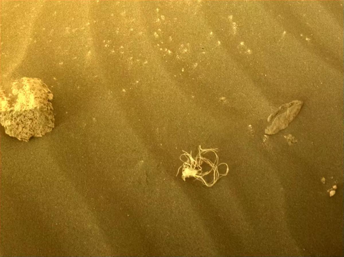 Именно такие обломки и находят марсоходы чаще всего. Тот самый клубок сетки, с которого началась эта статья, был частью системы, удерживающей парашют и тепловой щит во время полета. А блестящее термоодеяло, обнаруженное «Персеверансом» в июне 2022 года в двух километрах от места его посадки, когда-то защищало сам ровер от экстремальных температур. Подобные находки — не редкость. «Кьюриосити» и «Оппортьюнити» также встречали фрагменты своих посадочных аппаратов, блуждая по марсианской пустыне.