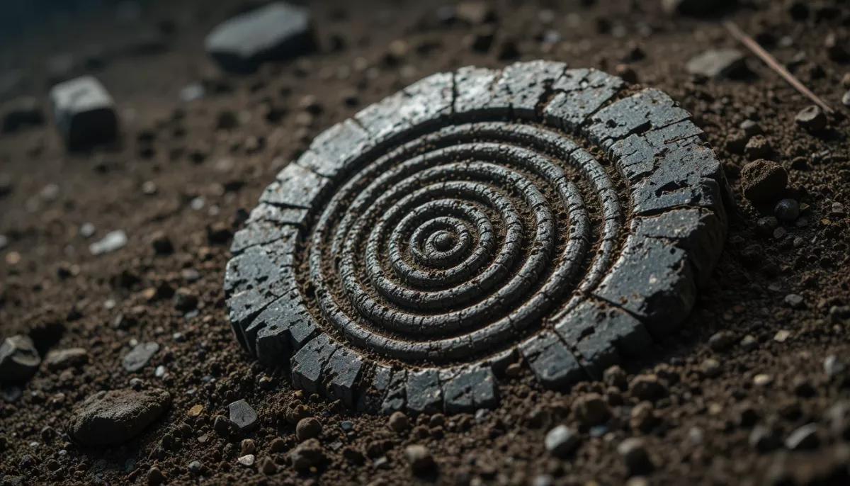 Ремонтируя один из подвалов, рабочие обнаружили под фундаментом замкнутый на ржавую цепь деревянный ящик и странные камни с загадочными резьбами. Среди них был продолговатый предмет из черно-зелёного камня, на котором вились спирали.