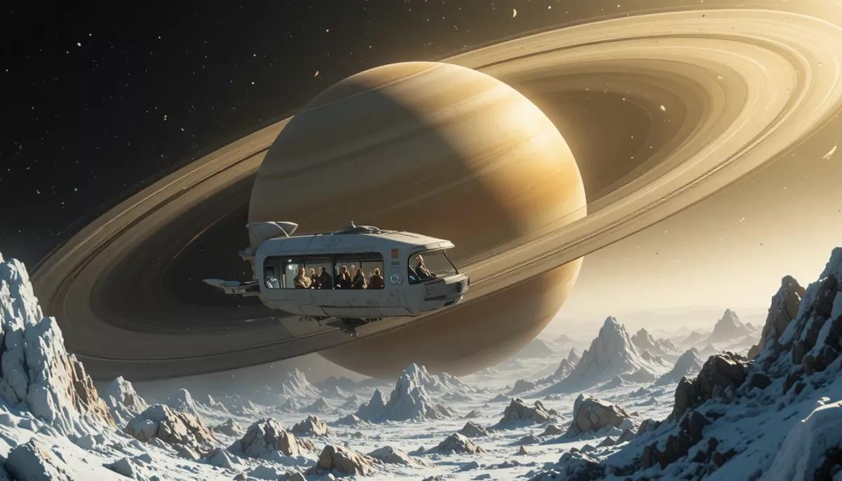 Космотуристический лайнер будущего мог бы выйти на орбиту, проходящую через разрежённые участки колец. За панорамными иллюминаторами медленно проплывали бы кристаллические глыбы, подсвеченные Солнцем, а вдали висел бы желтоватый диск Сатурна. Пассажирам предлагали бы «прогулки» по внутреннему коридору с прозрачным полом, где кажется, будто под тобой бездонная снежная метель в невесомости.